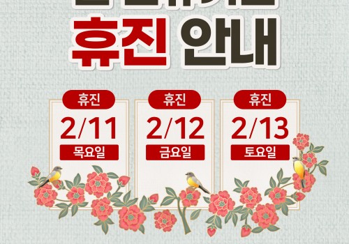 샤인치과는 2월 11일(목)~2월 13일(토) 3일간 설 연휴로 인한 휴진 입니다.