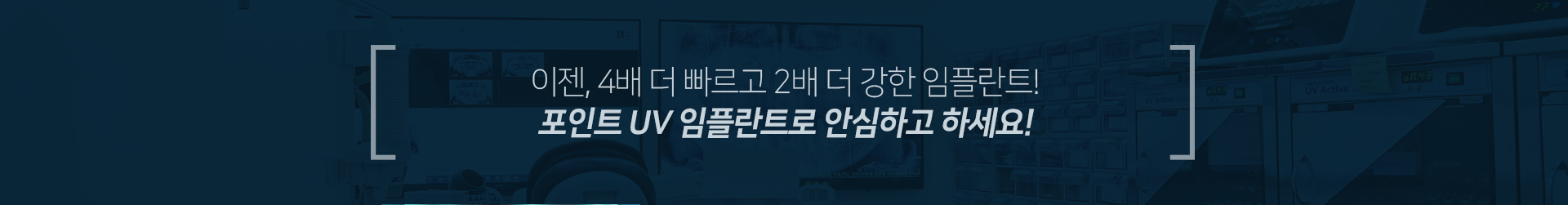 3주의-기적-포인트-UV-임플란트-특허받은-자외선-특수-공법과-차별화된-기술력으로-뼈와-임플란트의-결합을-더-빠르게-더-강하게-공정시킬-수-있는-믿고-안심할-수-있는-차세대-임플란트입니다 서울대-출신-치과-박사들이-만든-포인트-UV-임플란트-임플란트-시술-후-실패가-일어나는-가장-빈번한-시기는-3~4주로써-이는-임플란트-식립-후-가장-예민하고-불안정한-시기라-ISQ-값이-떨어진-상태이고-뼈와-임플란트의-고정이-8주-후에-완성되기-때문입니다-이러한-임플란트의-문제점을-극복하고자-서울대-치과-박사들이-수년간-공동-연구하여-탄생하였습니다-포인트-UV-임플란트는-3주-만에-뼈와-임플란트가-고정되는-차세대-혁신적인-임플란트로서-임플란트-실패율을-제로에-가깝게-한-꿈의-임플란트입니다 이젠-4배-더-빠르고-2배-더-강한-임플란트-포인트-UV-임플란트로-안심하고-하세요 이런-경우-더욱-좋습니다-잇몸뼈가-부족하신-어르신-잇몸뼈가-약한-여성분들-바쁜-현대인-4주-이내-빠른-치유-기간-뼈이식이-필요한-분들-전신질환으로-임플란트를-망설이는-분들-수술-후-신속하게-보철물까지-완성하는-치료 포인트-UV-임플란트-장점-높은-수술-성공률-임상으로-검증된-뛰어난-기술-안전하고-우수한-제품-빠른-치유-기간-짧은-치료-기간-10년-이상의-검증된-제품-믿을-수-있는-유지-보수-관리-약한-뼈에-더욱더-좋은-제품