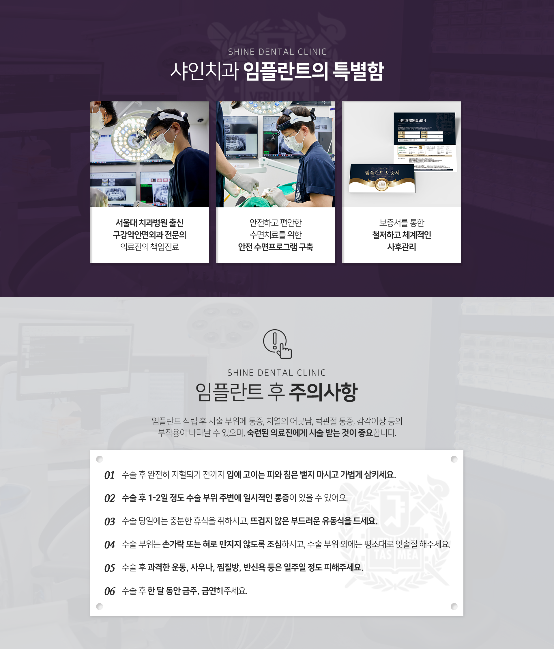 임플란트-특별함-첫-번째-서울대-치과병원-출신-구강악안면외과-전문의-의료진의-책임-진료-두-번째-안전하고-편안한-수면치료를-위한-안전-수면-프로그램-구축-세-번째-보증서를-통한-철저하고-체계적인-사후관리-주의사항-임플란트-식립-후-시술-부위에-통증-치열의-어긋남-턱관절-통증-감각이상-등의-부작용이-나타날-수-있으며-숙련된-의료진에게-시술받는-것이-중요합니다-수술-후-완전히-지혈되기-전까지-입에-고이는-피와-침은-뱉지-마시고-가볍게-삼키세요-수술-후-1~2일-정도-수술-부위-주변에-일시적인-통증이-있을-수-있어요-수술-당일에는-충분한-휴식을-취하시고-뜨겁지-않은-부드러운-유동식을-드세요-수술-부위는-손가락-또는-혀로-만지지-않도록-조심하시고-수술-부위-외에는-평소대로-잇솔질-해주세요-수술-후-과격한-운동-사우나-찜질방-반신욕-등은-일주일-정도-피해주세요-수술-후-한-달-동안-금주-금연해-주세요 임플란트-특별함-첫-번째-서울대-치과병원-출신-구강악안면외과-전문의-의료진의-책임-진료-두-번째-안전하고-편안한-수면치료를-위한-안전-수면-프로그램-구축-세-번째-보증서를-통한-철저하고-체계적인-사후관리-주의사항-임플란트-식립-후-시술-부위에-통증-치열의-어긋남-턱관절-통증-감각이상-등의-부작용이-나타날-수-있으며-숙련된-의료진에게-시술받는-것이-중요합니다-수술-후-완전히-지혈되기-전까지-입에-고이는-피와-침은-뱉지-마시고-가볍게-삼키세요-수술-후-1~2일-정도-수술-부위-주변에-일시적인-통증이-있을-수-있어요-수술-당일에는-충분한-휴식을-취하시고-뜨겁지-않은-부드러운-유동식을-드세요-수술-부위는-손가락-또는-혀로-만지지-않도록-조심하시고-수술-부위-외에는-평소대로-잇솔질-해주세요-수술-후-과격한-운동-사우나-찜질방-반신욕-등은-일주일-정도-피해주세요-수술-후-한-달-동안-금주-금연해-주세요